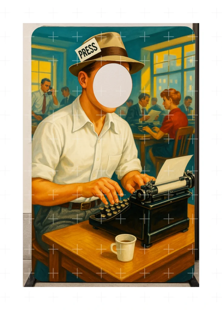 A trendy and eye-catching face-in-hole board mockup setup for a photo booth for event backdrop.