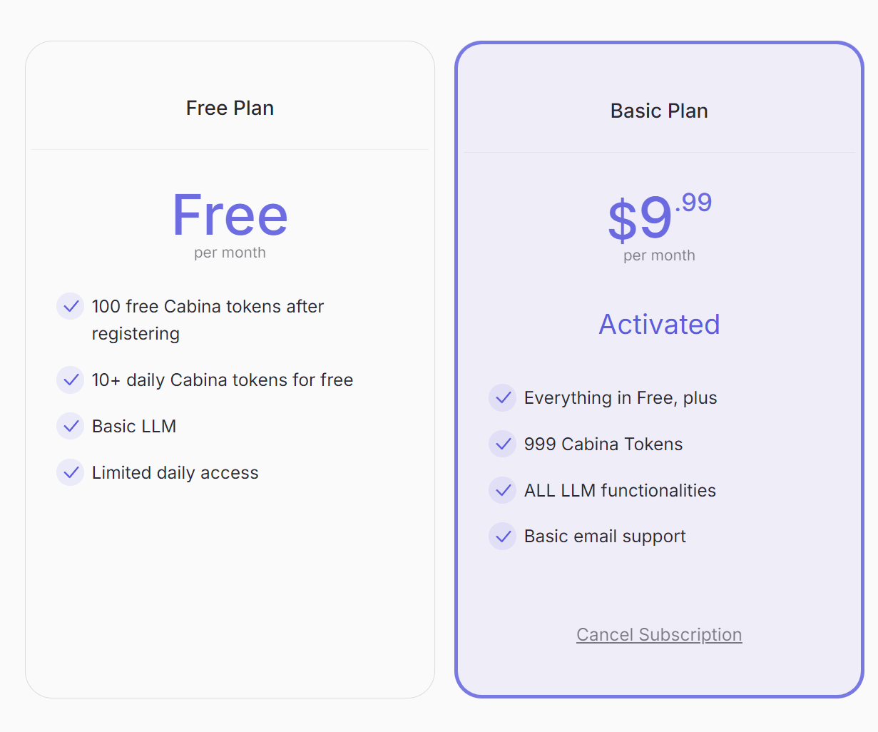 - Can I upgrade or cancel my subscription? Yes, Cabina.ai allows users to upgrade or canceling their subscription plans according to their needs.