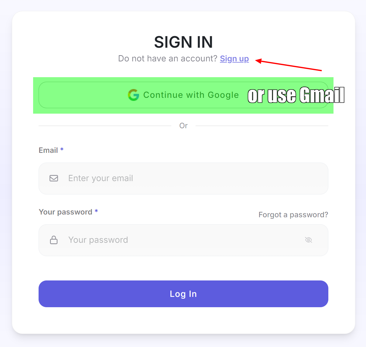- Choose your preferred registration method—you can sign up using your Gmail account or any other email.