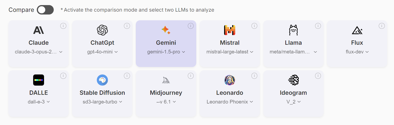 Cabina.ai allows you to compare outputs from different AI generators, helping you choose the best tool for your specific needs. For example, you might find that Midjourney excels in creating artistic images, while Dall-e is better for more realistic visuals. By experimenting with different tools, you can make informed decisions and optimize your content creation process.