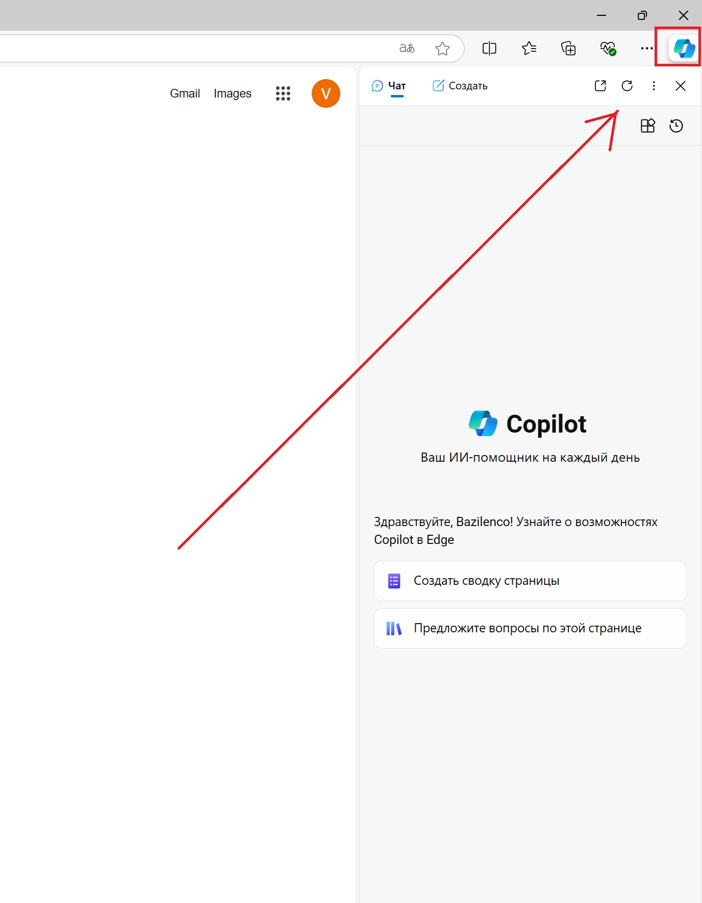 Step 2: In the upper right corner you will see the Copilot logo. Click on it