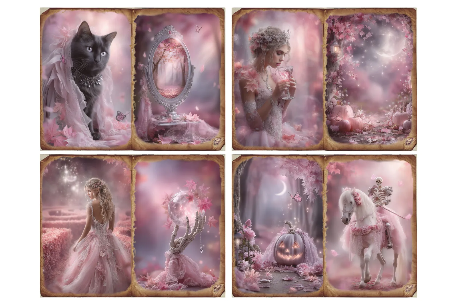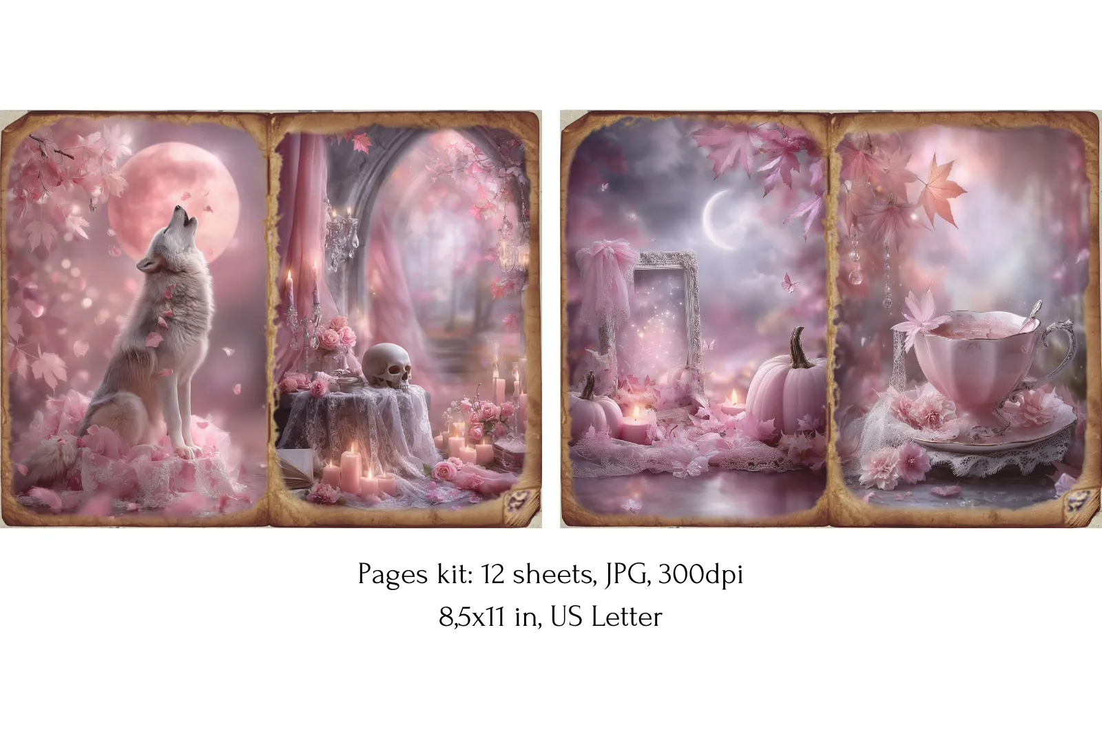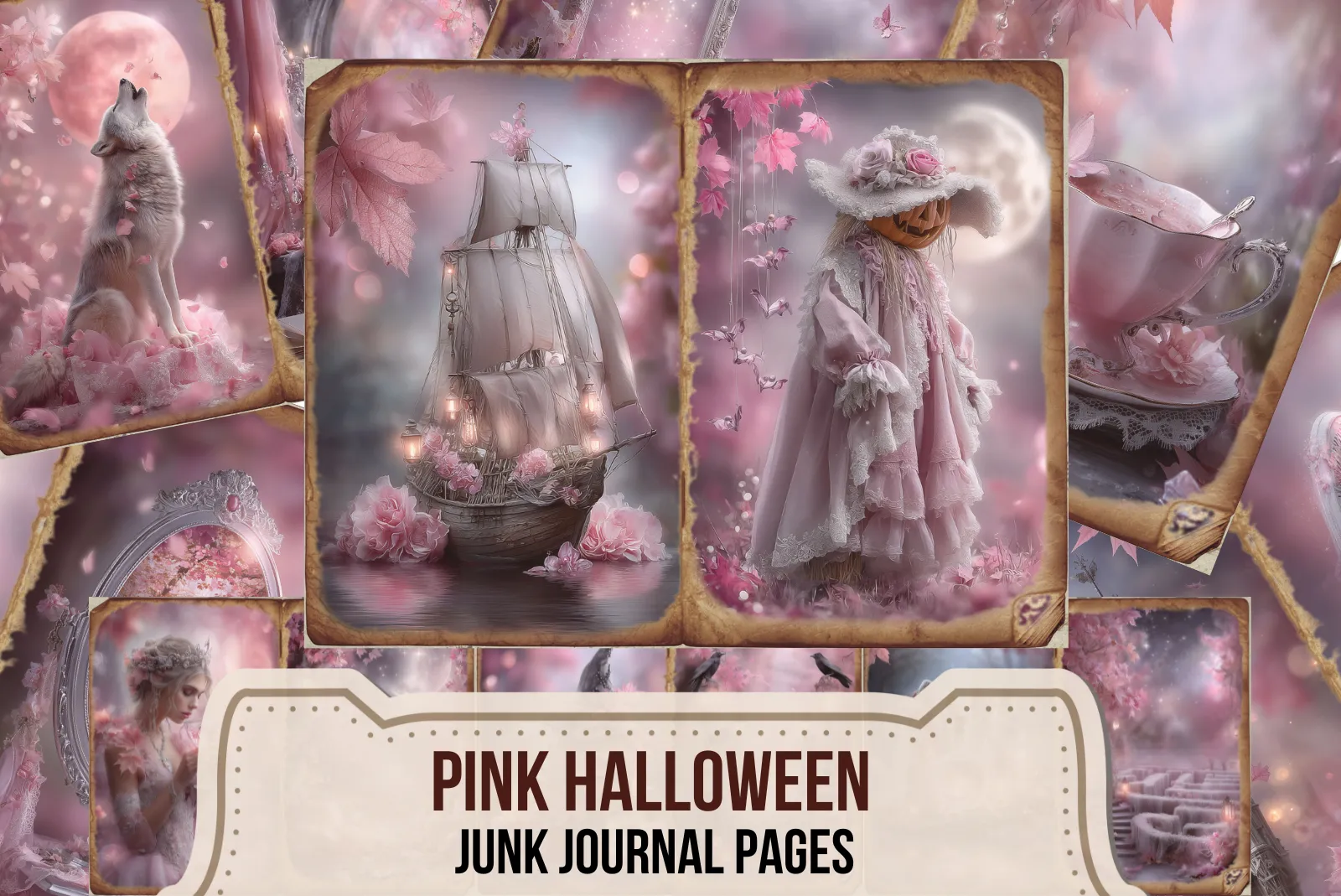 12 Pink Halloween Junk Journal Pages, Halloween Junk Journal, Halloween Printable, Junk Journal, Collage, Ephemera