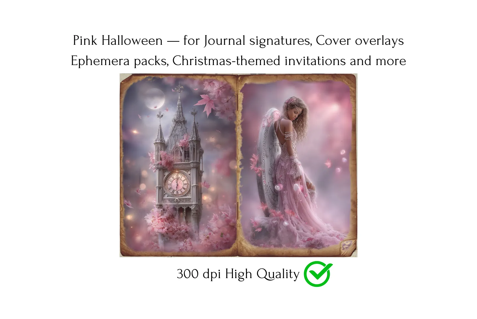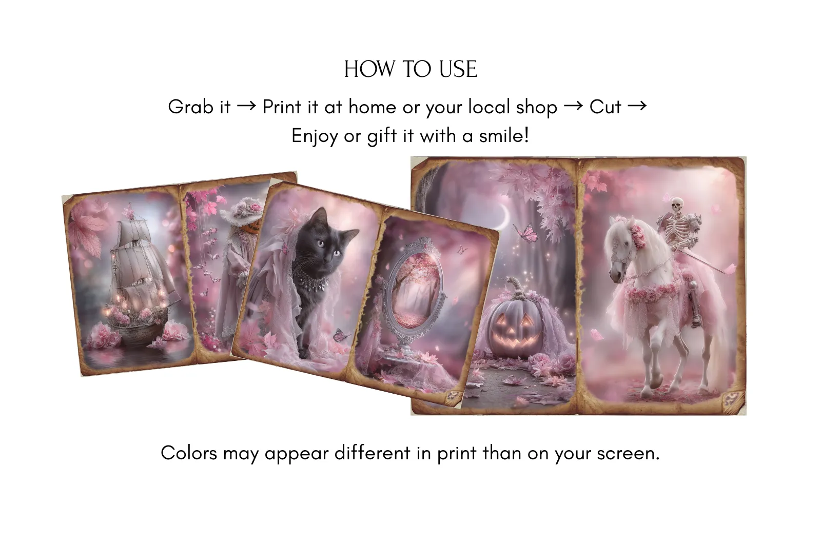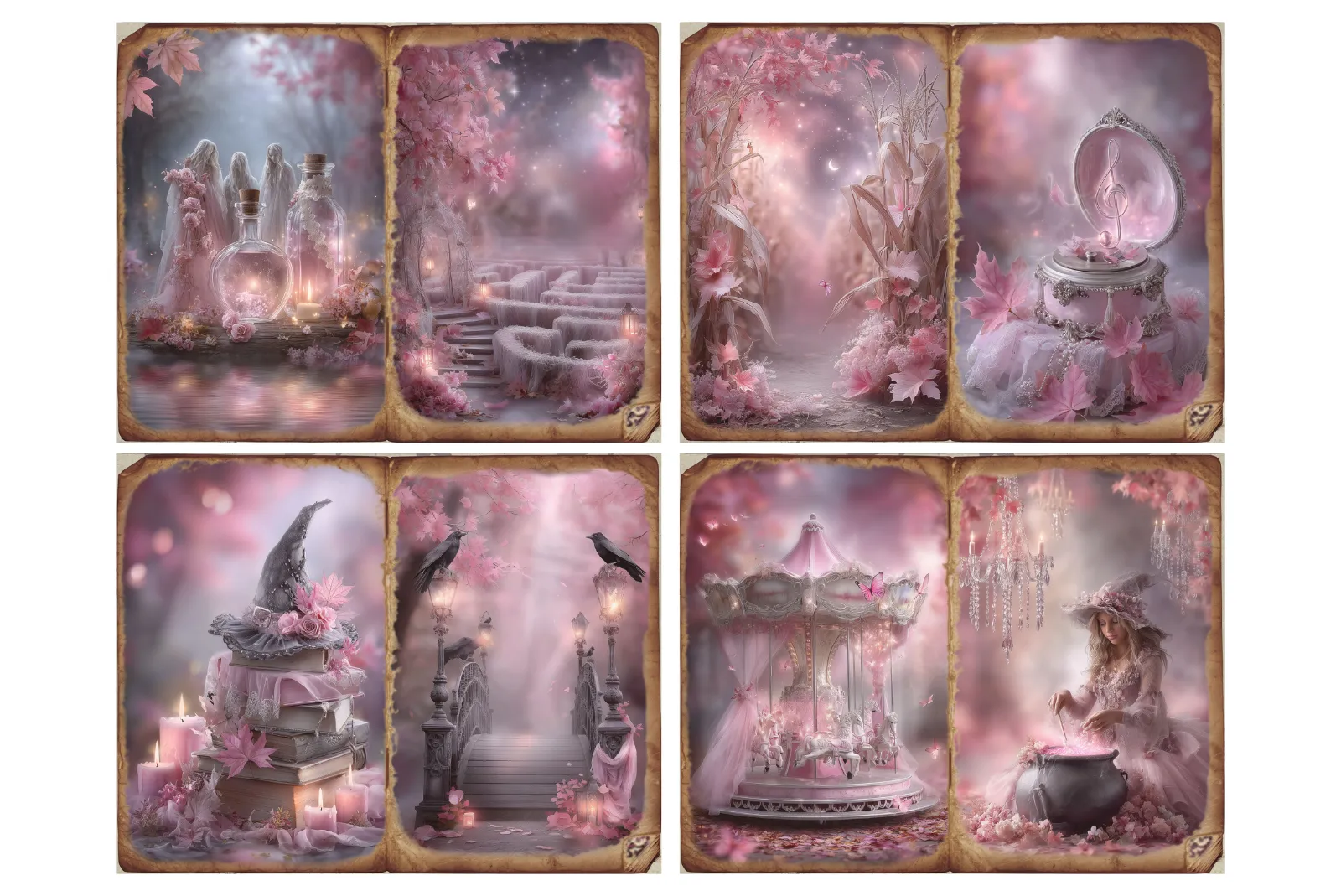 12 Pink Halloween Junk Journal Pages, Halloween Junk Journal, Halloween Printable, Junk Journal, Collage, Ephemera