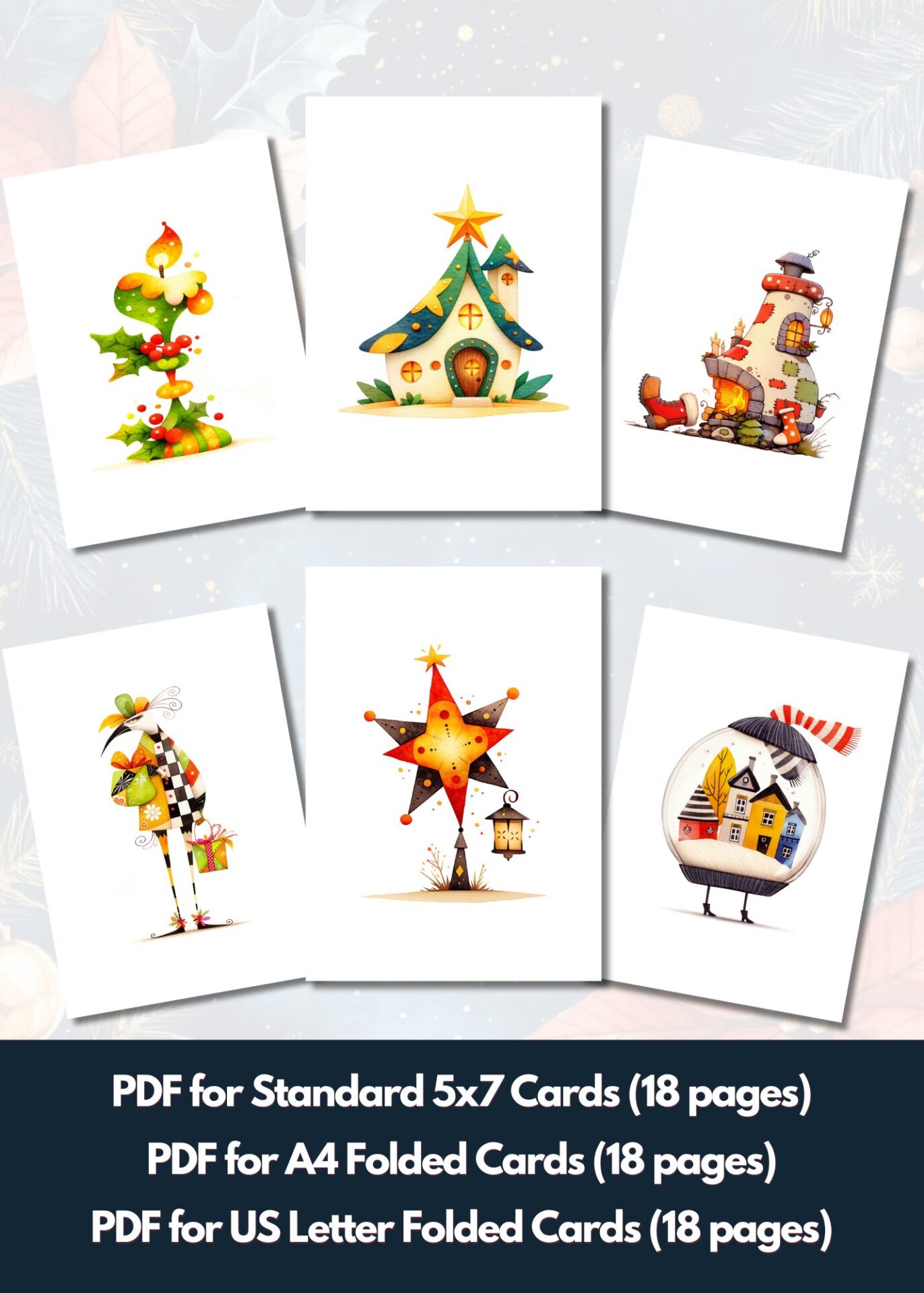 Celebrate the season with this stunning set of 18 festive and colorful greeting cards for Christmas and New Year! These printable designs are perfect for sending warm wishes to family, friends, and loved ones.