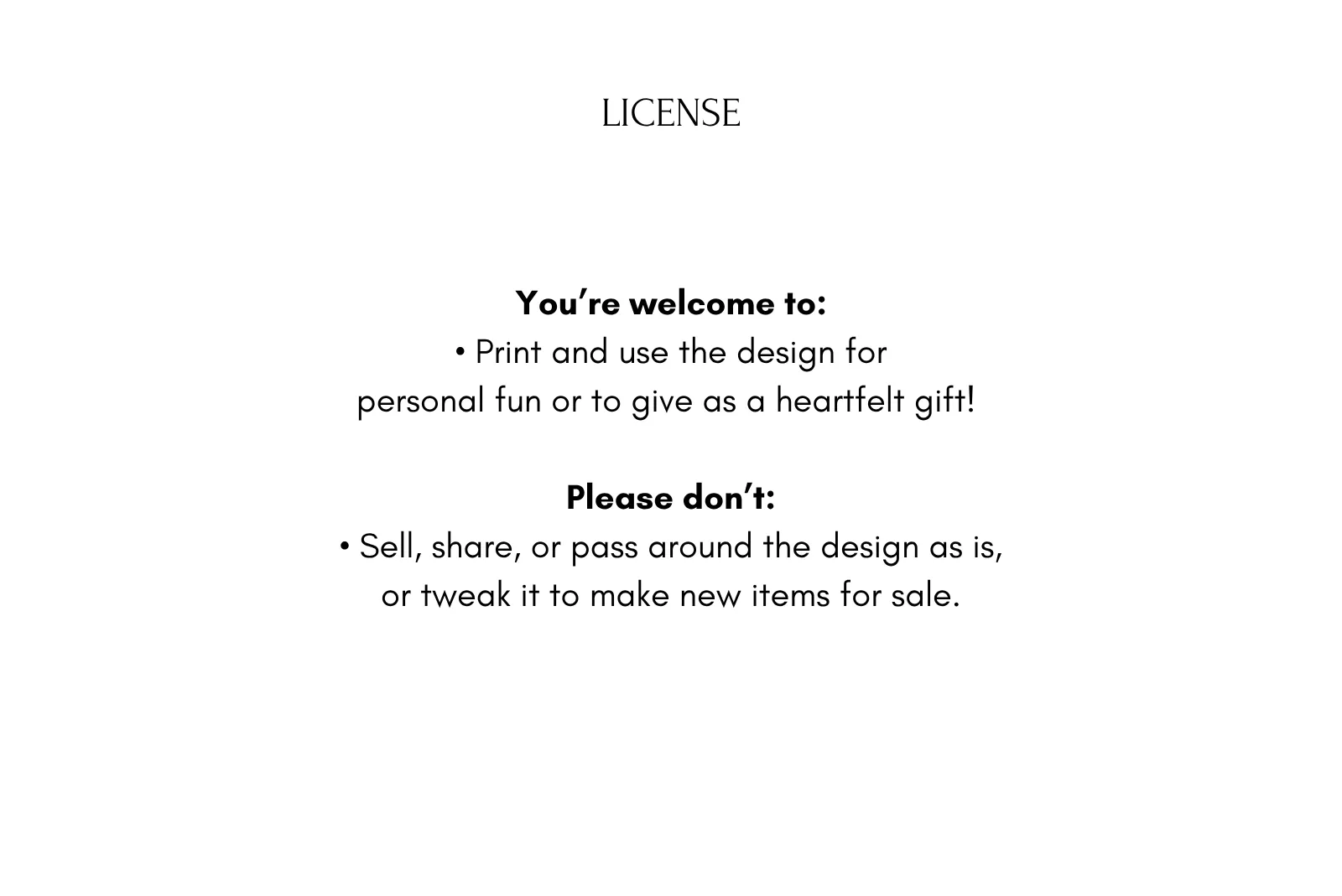 Full commercial use is permitted. No extra license or credit is required. One condition: you must create a new product or add your own design work before selling (for example: posters, prints, cards, invitations, mugs, tote bags, stickers, planners, websites, etc.).