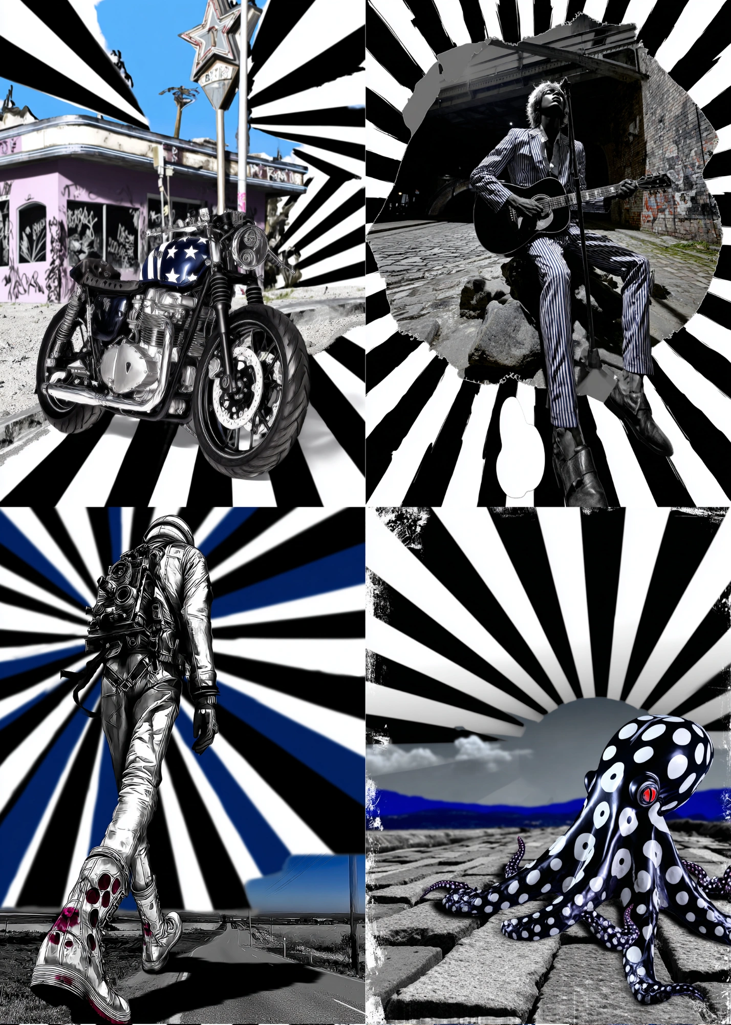Bring your creativity to life with this photorealistic poster prompt template, designed to generate bold cinematic artworks in Midjourney v7. Each image features your chosen [SUBJECT] placed in a dramatic poster composition with striking black-and-white radial rays in the background for an eye-catching graphic effect.