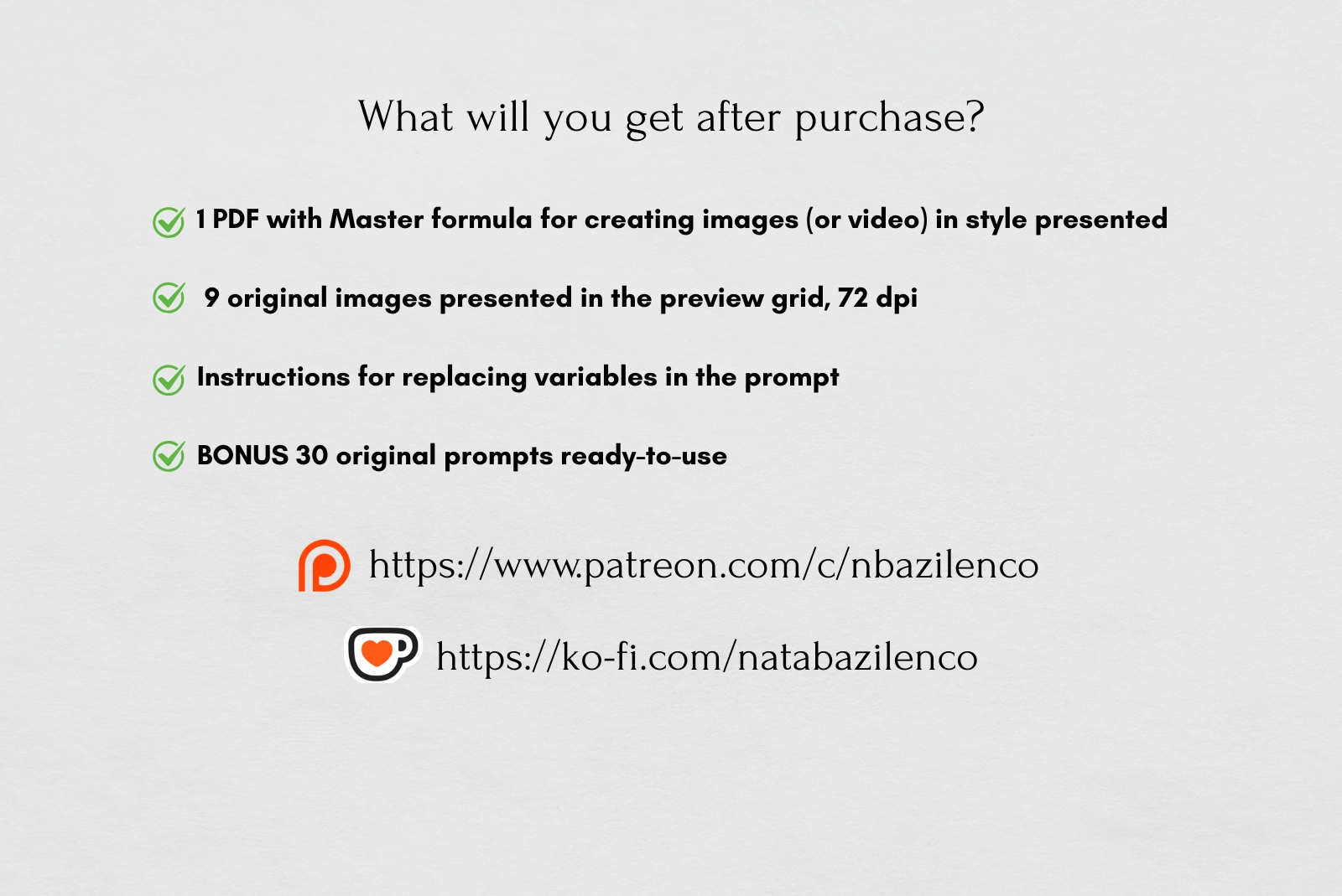Sharing, distributing, reselling, or freely distributing the images included in the download file (unless otherwise specified in the specific prompt description) is prohibited. However, you may create NEW images using the provided prompt and use them as your own digital files for commercial purposes, such as decorating end products or selling them on microstocks (for example, you can create new images and sell them via Adobe Stock, Dreamstine, Displate, Redbubble or in your store). Please ensure that you use image generators and artificial intelligence tools that permit commercial use of your creations.