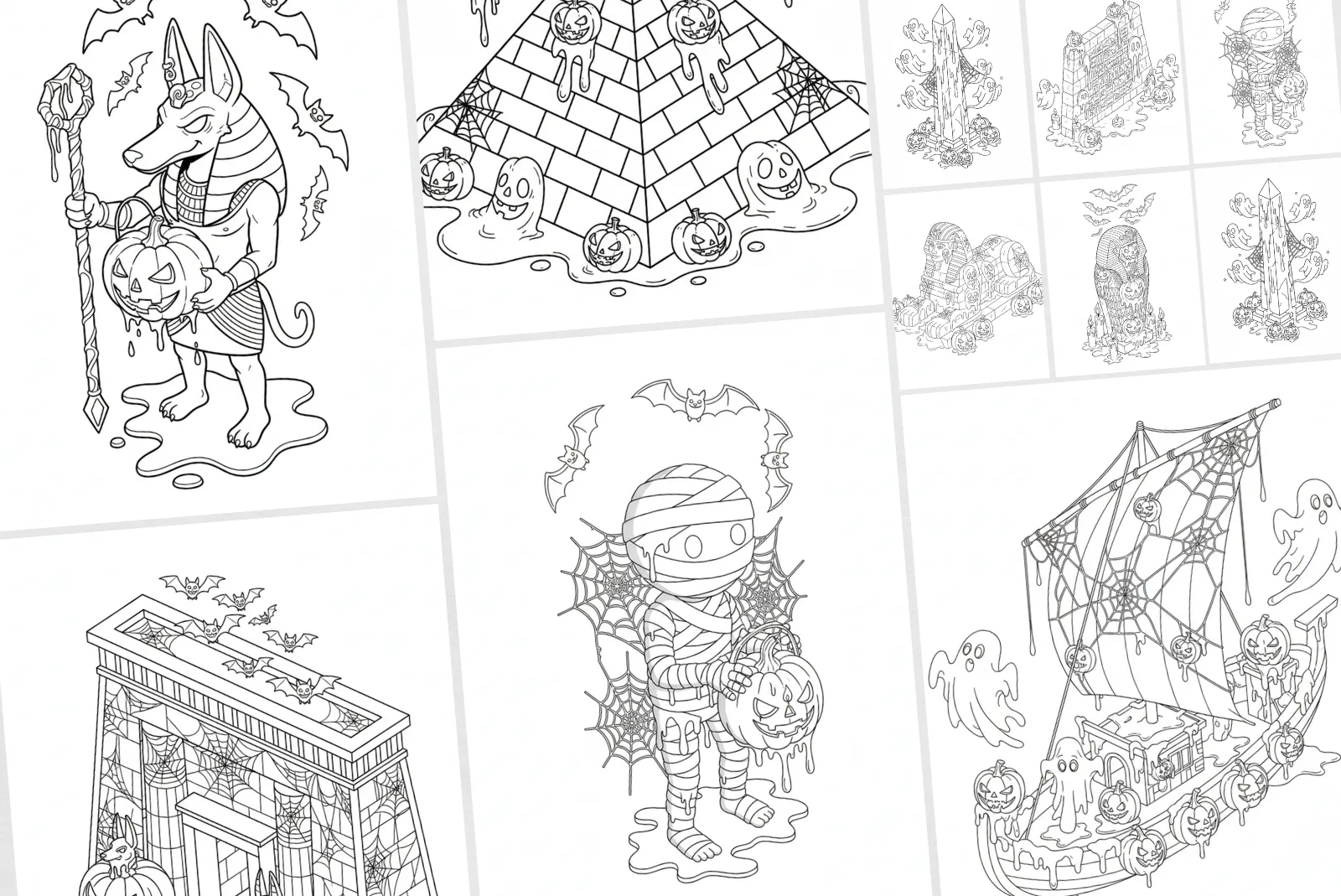 Nano Banana Imagen Prompts for Egyptian Melting Halloween Coloring Pages for Adults